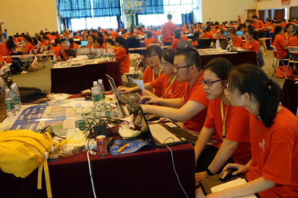 最后,张平宣布2018年湖南省“新道杯”第三届大学生企业模拟经营竞赛正式开幕。随后,技术人员检查好电脑电源等设备后,志愿者发放U盘,参赛队伍开始比赛。