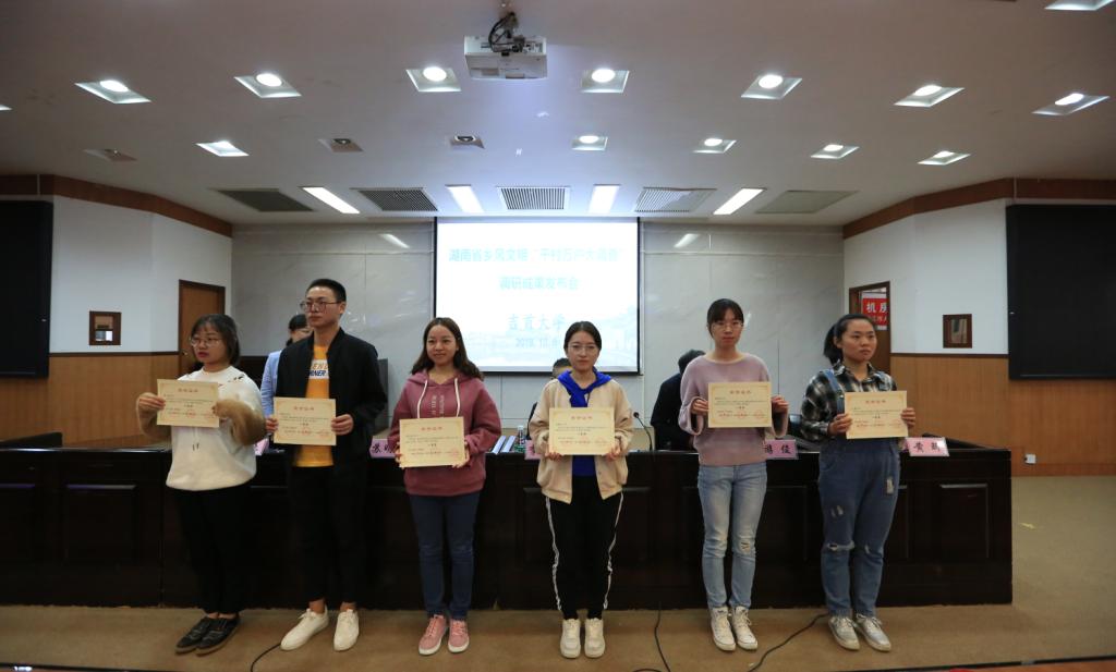 10月8日,由湖南省文明办与8858cc永利官网联合组织的乡风文明“千村万户大调查”调研成果发布会在8858cc永利官网砂子坳校区模拟法庭召开。会上,州文明办主任苏明宣读了优秀调研团队表彰文件,校党委委员、宣传部部长、校团委书记王艳宣读了优秀调研报告表彰文件。