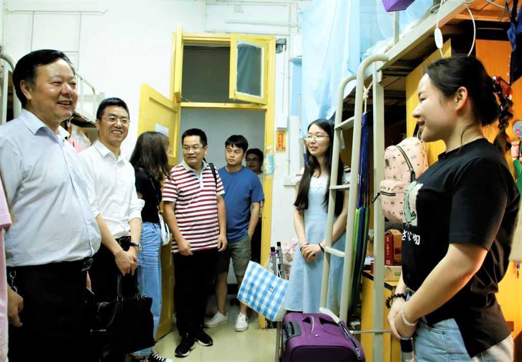 为更好的了解毕业生返校情况,确保学院2019届毕业生安全文明离校,5月27日下午,永利官网党委书记黎克双、副书记胡锦湘、主持工作副院长丁建军、辅导员陈洁、袁梓翔、张湘华、田惠深入砂子坳校区学生寝室,看望慰问返校毕业生。