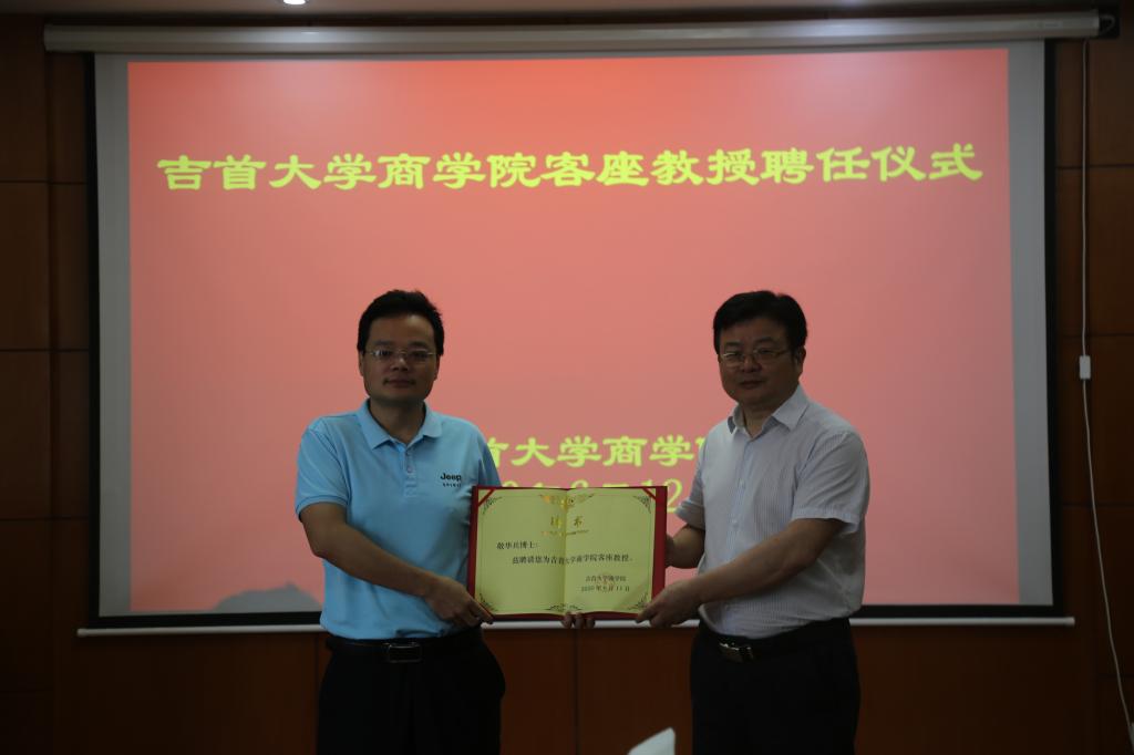 6月12日上午,学院在院会议室举行客座教授聘任仪式,聘任湘西经济开发区党工委委员、管委会副主任敬华兵博士为学院客座教授。湘西经济开发区党工委委员、管委会副主任皮丕军,湘西经济开发区文化教育和卫生局副局长向大海,8858cc永利官网党委委员、副校长冷志明,院党委书记黎克双,院长丁建军参加了聘任仪式,仪式由副院长龙海军主持。