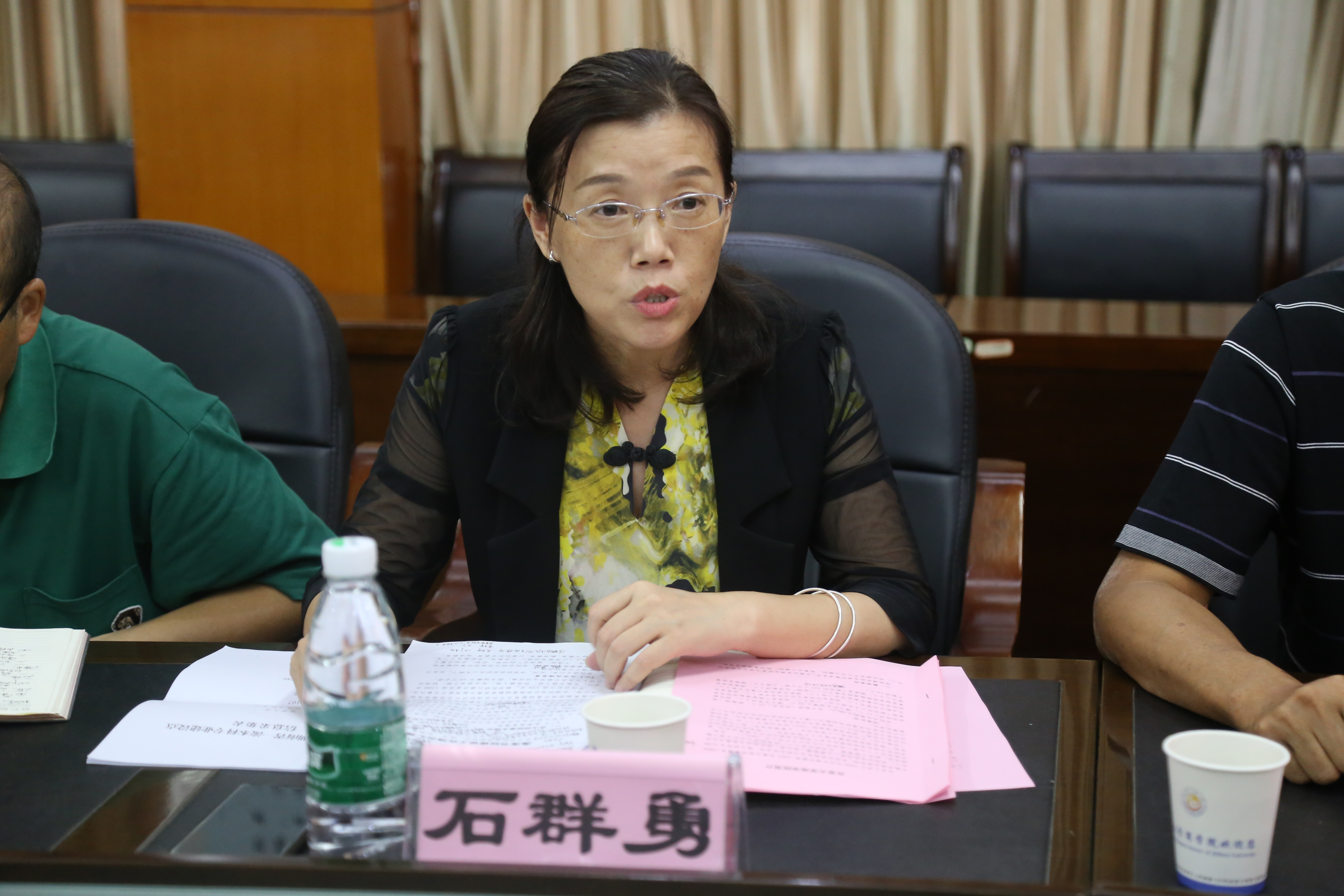 在院会议室,院党委书记黎克双,院长丁建军,副院长龙海军、张琰飞,党委副书记胡锦湘,会计系主任张霞,院办公室主任王泳兴热情接待了石群勇院长、杨华副院长一行。