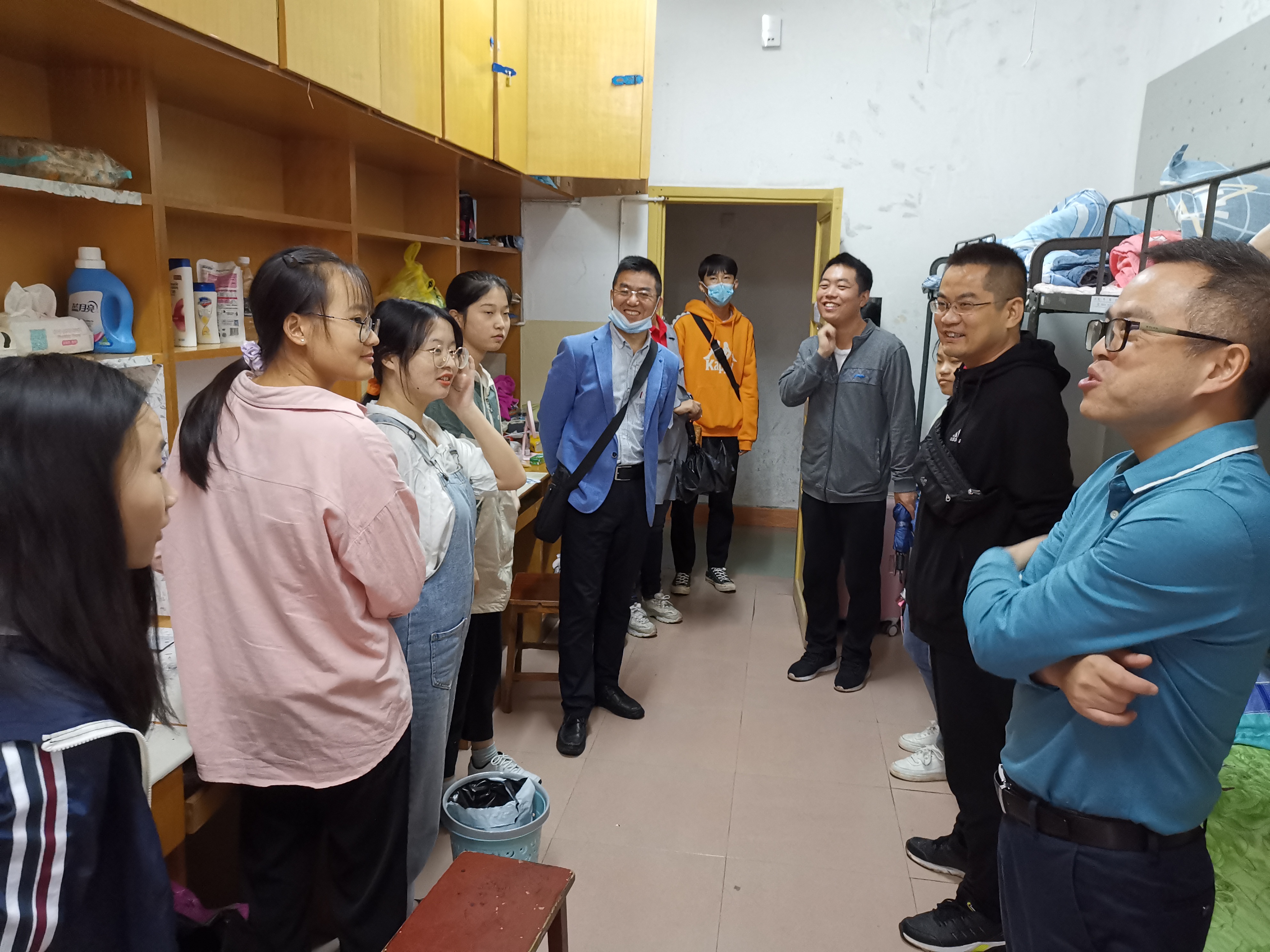 在寝室里,丁院长和各位领导关切地询问大家“老家是哪的”、“报到手续都办完了吗”、“还有什么困难”等,同时叮嘱大家吉首早晚温差大,一定要注意防止感冒,希望大家按照学校疫情防控工作的要求,配合做好常态化疫情防控工作。