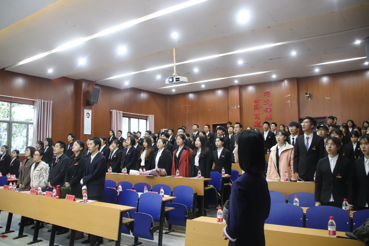 11月14日,学院在砂子坳校区第三教学楼8858cc永利官网学术报告厅举行了8858cc永利官网2020年学生代表大会暨第十九届团总支学生会成立大会。院党委副书记胡锦湘、学工办主任陈洁、团总支书记唐琪、2019级辅导员邹欢、2020级辅导员汪益民和8858cc永利官网第19届团总支学生会主席团成员、各部门委员、党员代表及2018、2019、2020级各班代表参加了会议。