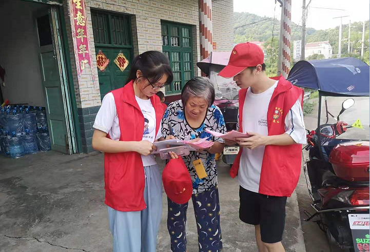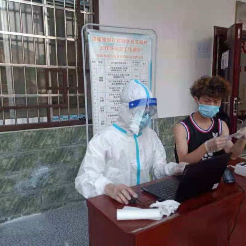 37摄氏度的高温,厚重的防护服,额头留下的汗水,这正是协助医护人员给村民做核酸检测的2019级工商管理学二班徐刚。他积极投身张家界市桑植县陈家河镇的疫情防护工作:登记村民疫苗接种信息,核实村民健康状况,协助医护人员对行动困难的村民进行核酸检测等。“学院一直号召我们参加社会实践活动。参加此次的抗疫志愿服务活动,是我参加过的最有意义的社会实践!”