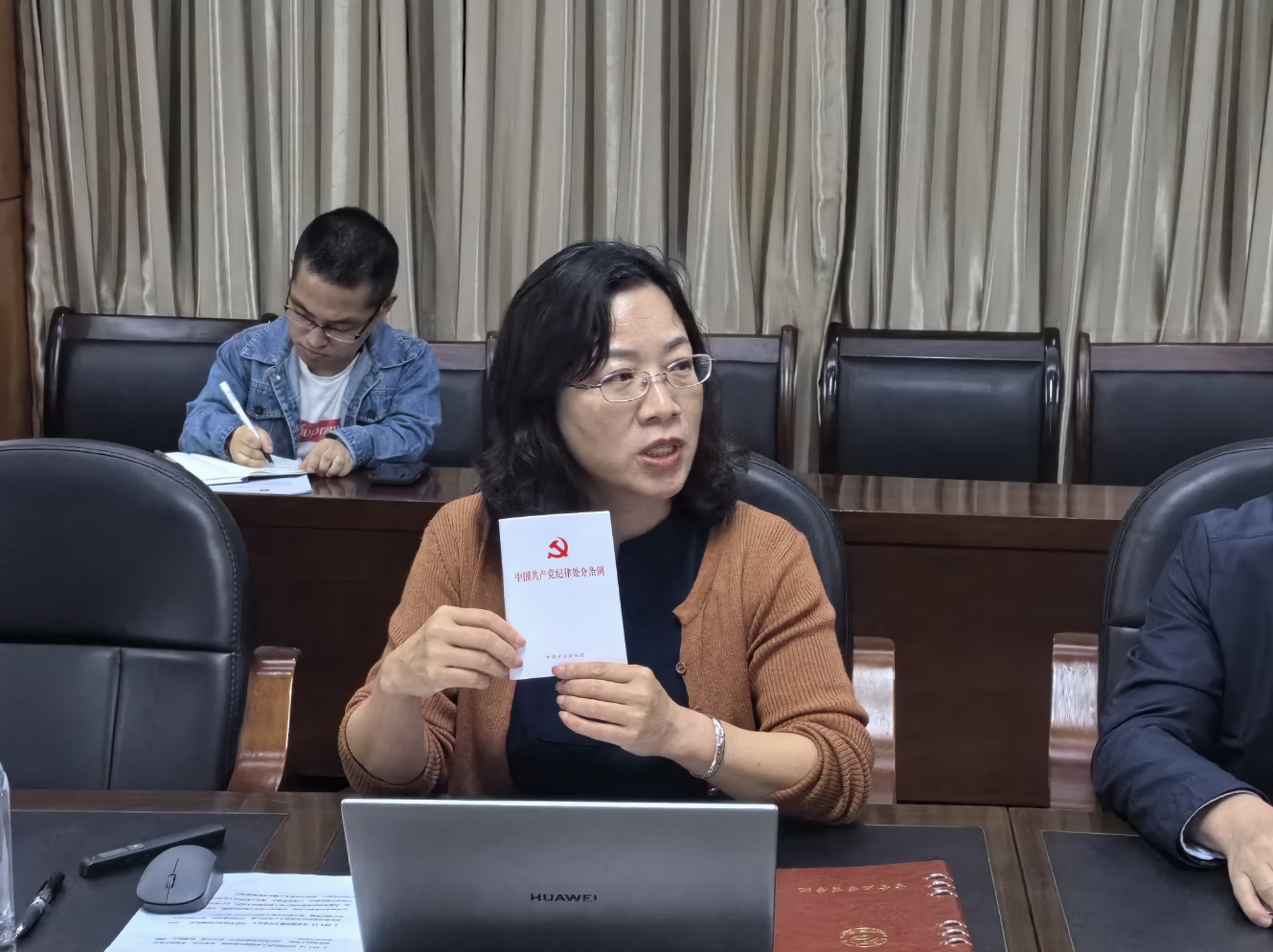 本次党纪学习教育专题党课上,宋洁以《坚持“三个导向”,推动党纪学习教育走深走实》为主题,从《中国共产党纪律处分条例》的修订历程为切入点,结合《条例》修订条款,通过“要坚持目标导向,搞清楚‘为何学’”“要坚持问题导向,搞清楚‘学什么’”“要坚持效果导向,搞清楚‘怎么学’”等三个方面,从深刻认识开展党纪学习教育重要意义、深入学习《条例》内容和认真贯彻落实学习效果三个维度向大家作了一场内容丰富、生动精彩的专题辅导报告。宋洁书记在党课中引经据典、旁征博引,用大量详实的资料和数据,并结合近期具体案例进行警示教育,提醒学院全体教工党员在工作和学习生活中守好底线,认真做好《条例》的贯彻执行,共同维护好学院风清气正的廉洁氛围。
